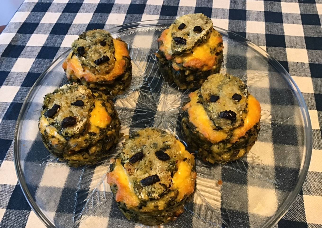 Crânes de polenta aux épinards frais,cheddar et ail noir