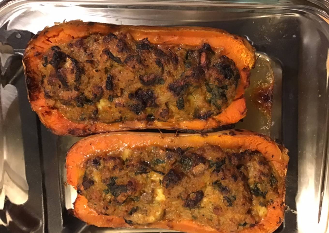 Courge butternut farcie porc épinards carotte violette et mozzarella di buffala