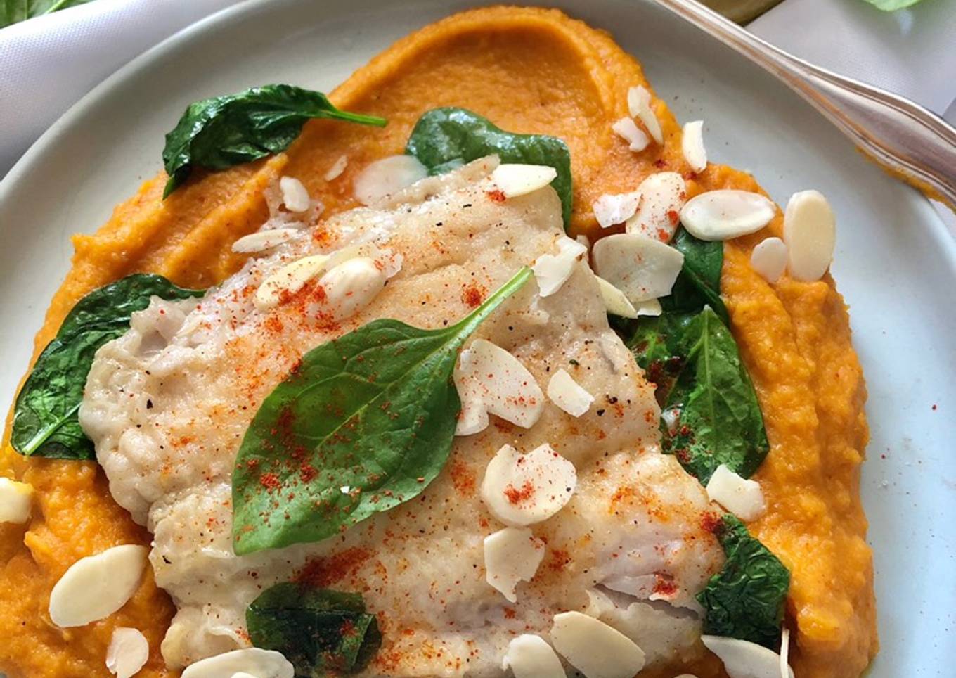Lieu à la meunière et sa purée de carottes lentilles corail au paprika