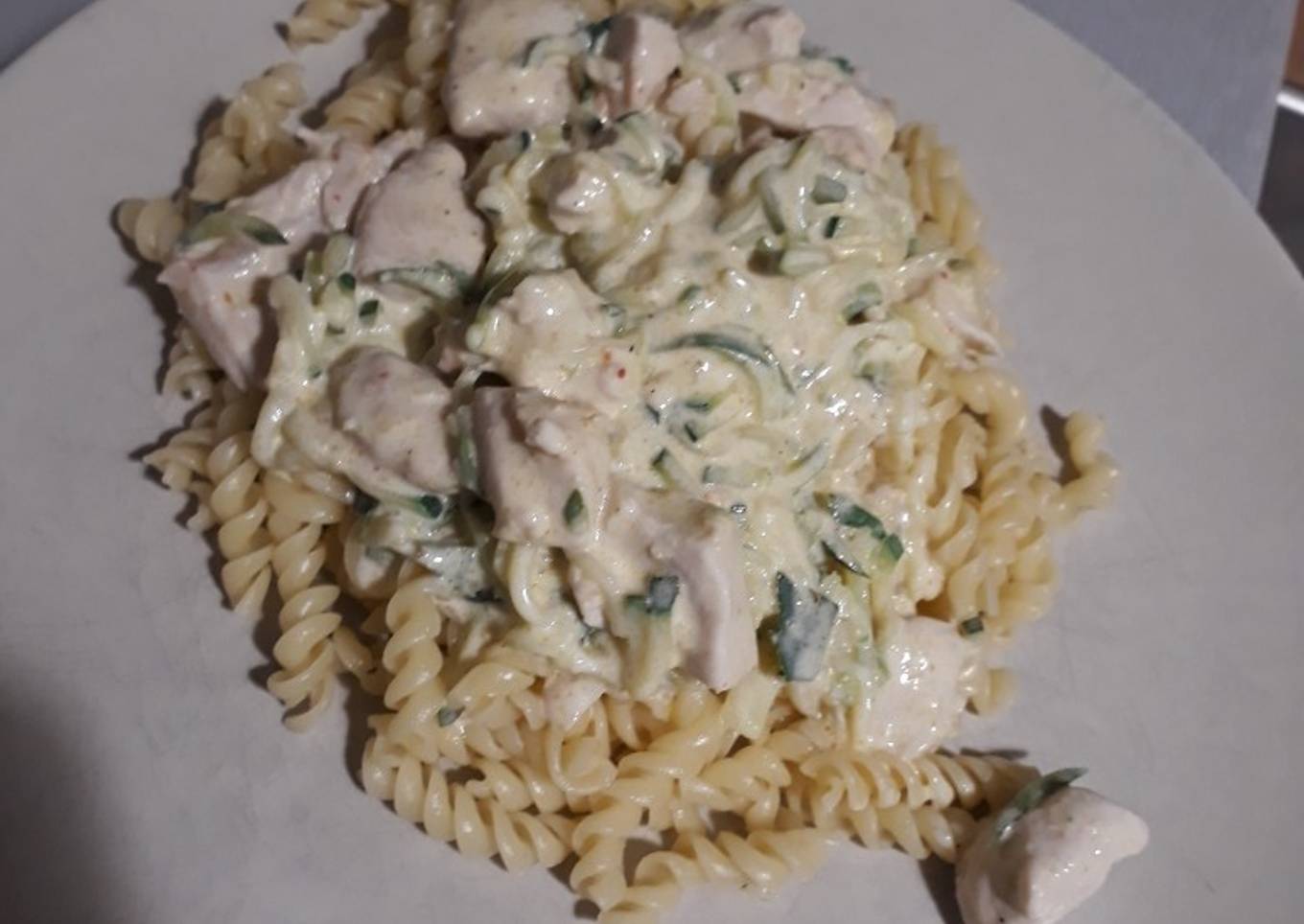 Hello everybody, it is Drew, welcome to our recipe page. Today, I'm gonna show you how to make a special dish, Pâtes courgettes poulet. It is one of my favorites food recipes. For mine, I am going to make it a bit unique. This is gonna smell and look delicious.