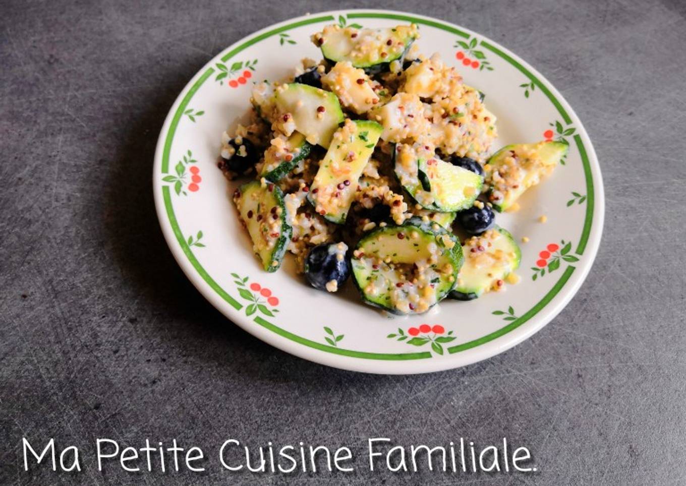 Salade quinoa/boulghour, courgette, fromage et myrtilles