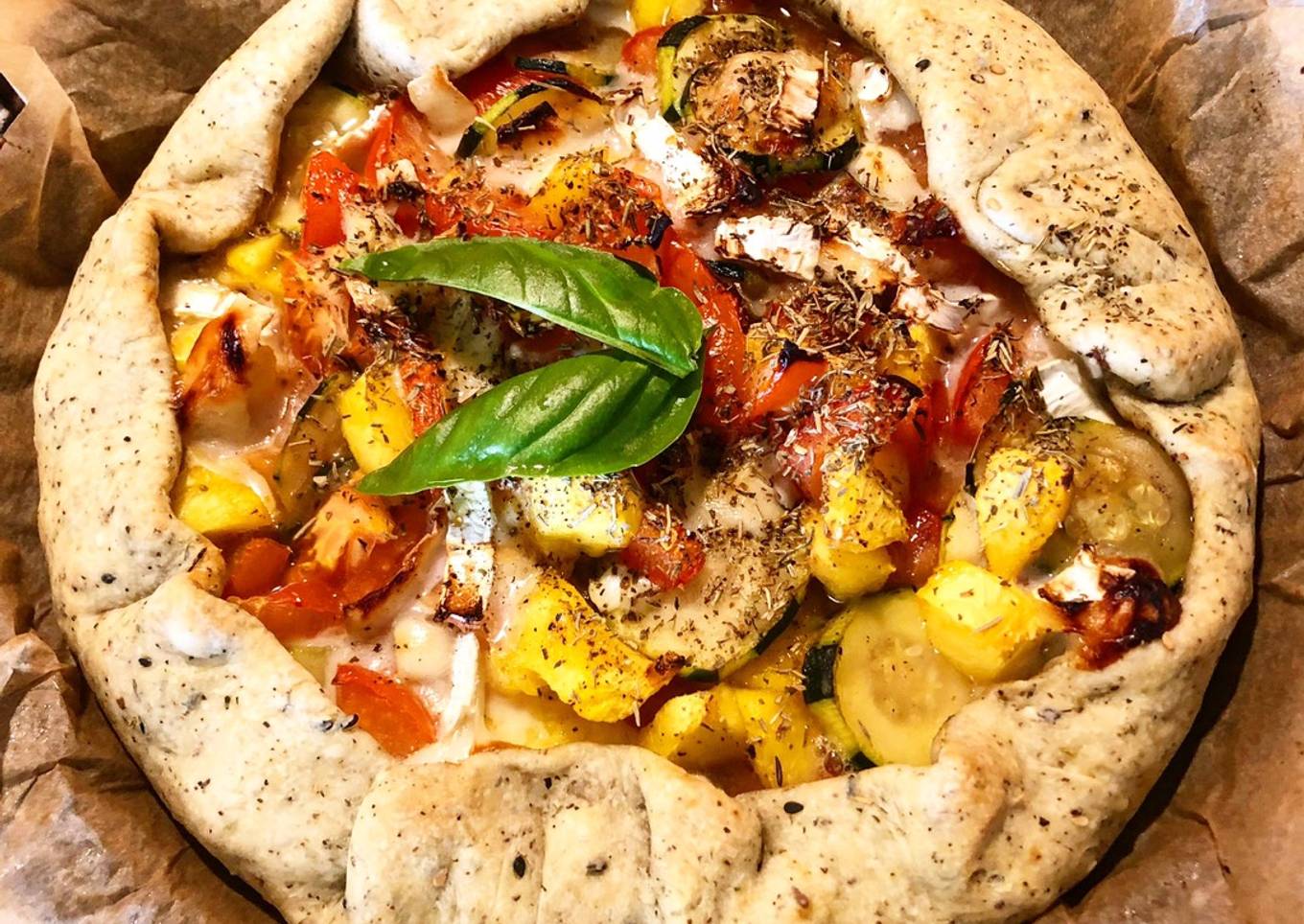 Tarte Rustique tomate, courgette, nectarine & chèvre