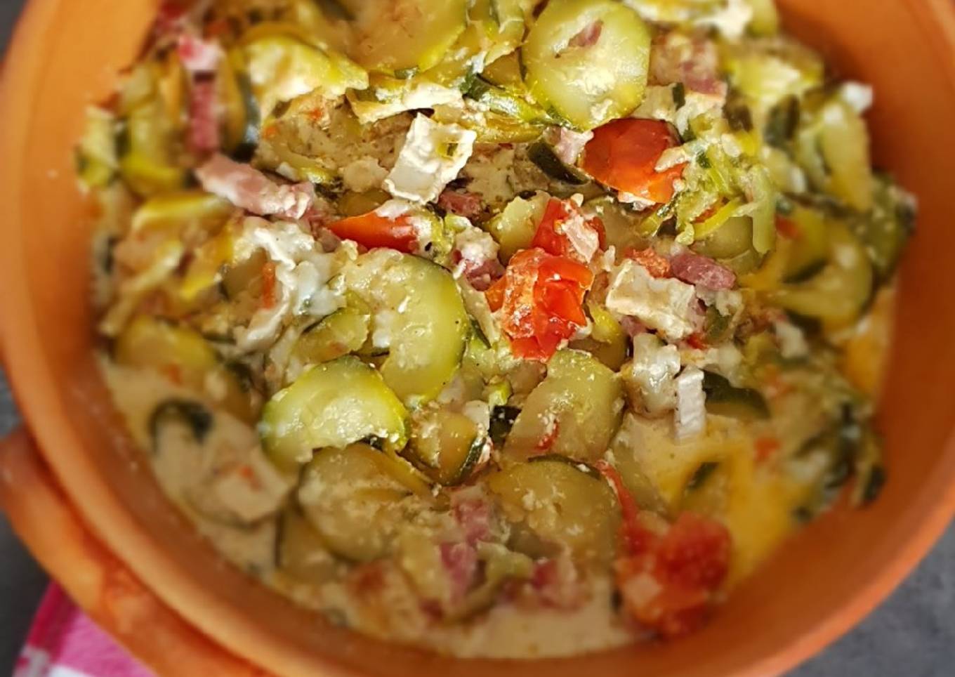 °Courgettes chèvre/lardons/tomates°